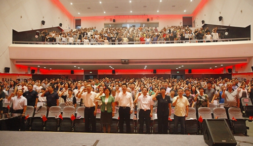 6月29日下午,北京服裝學院慶祝建黨九十七周年大會在大禮堂隆重舉行。黨委書記馬勝杰,副書記倪賽力、艾麗,黨委常委、副院長廖青、仲叢生、詹炳宏出席大會。學校全體中層干部、全體預備黨員、離退休黨員、師生黨員代表、獲獎人員共600余人參加了大會。