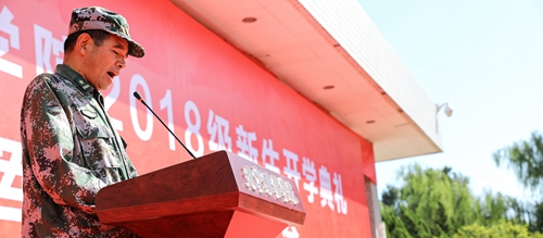 隨后,軍訓團團長潘洪友做軍訓工作動員,他對2018級新生提出了幾點要求:一要端正態度,提高意識;二要堅持標注,文明施訓;三要團結協作,凝聚正能量;四要嚴密組織、確保安全。