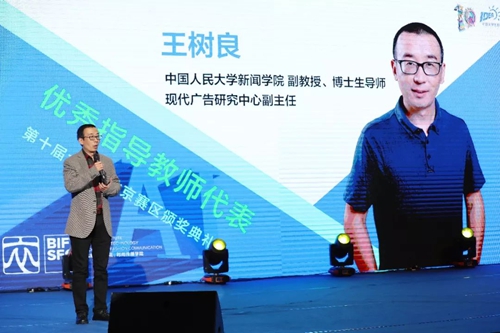 優秀指導教師代表中國人民大學王樹良老師從切身經驗出發,提出學校和教師要重視大廣賽,積極組織學生參與,組織創意學習,結合生活經歷,才能有更好的創意。