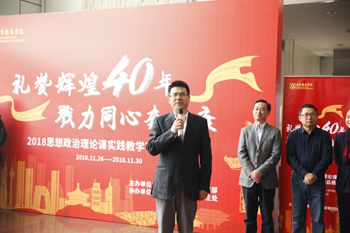 最后,馬勝杰書記宣布“禮贊輝煌四十年 戮力同心奔小康”2018思想政治理論課實踐教學藝術作品展開幕。