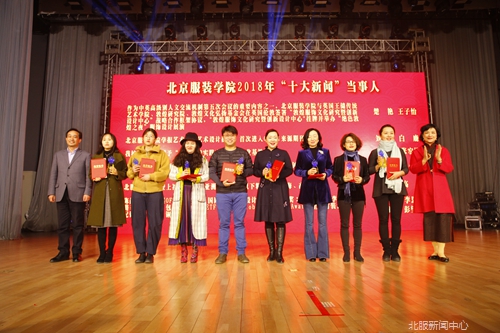 隨后,《2018年“十大新聞”》揭曉視頻的播放,發布了一年一度的“十大新聞”評選結果。2018年我校大事多,社會影響大。12月初,黨委宣傳部將一年來發表在官網和校報上的近600則新聞,按照十大新聞的要求初選形成42條新聞題目作為投票范圍,進行了紙質選票以及官網、官微在線投票相結合的投票,廣大師生積極參與,最終評選出(按新聞時間順序排序):一、作為中英高級別人文交流機制第五次會議的重要內容之一,北京服裝學院與英國王儲傳統藝術學院、敦煌研究院、敦煌文化弘揚基金會在英國倫敦簽署“敦煌服飾文化研究暨創新設計中心”戰略合作框架協議,"敦煌服飾文化研究暨創新設計中心"掛牌并舉辦“絕色敦煌之夜”服飾設計展演;二、北京服裝學院學報藝術版《藝術設計研究》首次進入CSSCI來源期刊目錄;三、我校被教育部授予“全國高校實踐育人創新創業基地”稱號;四、楚艷、周紹恩老師服裝設計團隊成功設計平昌冬奧會“北京8分鐘”表演服裝,團隊榮獲2018年北京市工人先鋒號稱號;五、北服兩名校友登上福布斯2018亞洲30位30歲以下精英榜(林海、高雪);六、陳靜獲第二十屆OFF FASHION 國際青年服裝設計師大賽一等獎,三名學生(李思杰、金璐菲、彭望望)包攬首屆美國 ETFashion Global Design Awards全球時裝設計大賽配飾組金、銀、銅獎;七、北服“中華民族服飾文化研究”項目獲批2018年度國家社科基金藝術學重大項目;八、詹凱教授、姜延副教授分別榮獲第十四屆北京市高等學校教學名師獎及第二屆北京市高等學校青年教學名師獎;九、北服參與“偉大的變革——慶祝改革開放40周年大型展覽”之“改革開放40周年群眾服裝變化”展區工作;十、藝術設計學院環境設計系教師黨支部獲首批參與培育創建“全國黨建工作樣板支部”殊榮,藝術設計學院環境藝術設計專業學生黨支部在北京高校紅色“1+1”示范活動評選中榮獲一等獎。