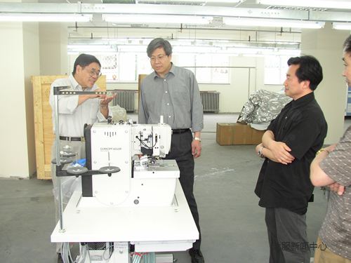 為進一步促進服裝教學與高科技結合,打造數字化服裝研發系統,葉老師提出在院內建立此科研項目實踐基地,得到了校領導的支持,并成功申報了市級科研項目。在市教委積極的支持下,優選了國際最先進的服裝計算機系統,有計算機輔助設計系統、打板系統、單片全自動裁床,全自動粘合設備、全自動上袖、釘扣、開袋、縫制等設備,又把葉老師參與研發的國產化立體熨燙機列入,引入從設計到裁剪、縫制、熨燙,計算機控制一條龍實驗系統,開發了當時全國高校中首例的數字化服裝研發系統。