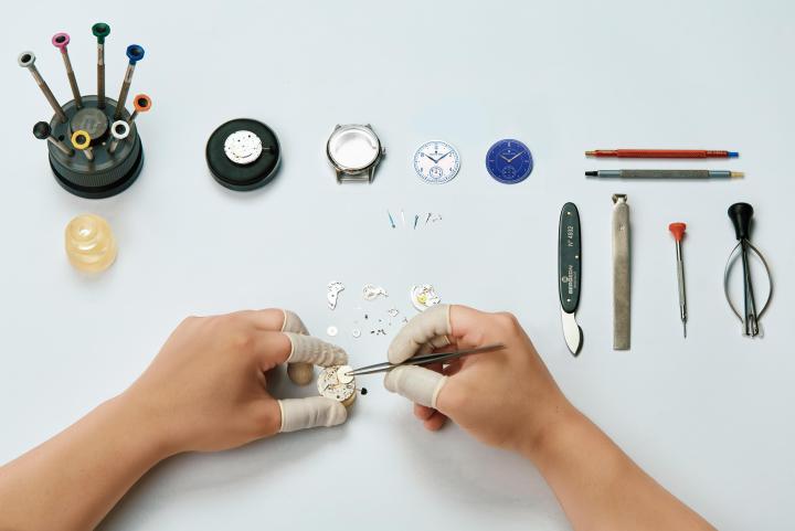 “霽”這個名字來自表盤的顏色——霽藍。這種特別的藍色始于我國元代陶藝大師,它是一種深邃、優雅的藍色,酷似暴風雨后的天空。優雅的表盤,自然要求搭配優雅的指針。