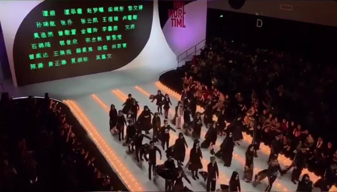 在藝術(shù)世界天馬行空的的設(shè)計(jì)師們,都會在畢設(shè)謝幕時(shí)忍不住“玩一把”。女服班“上”場的謝幕方式參考電影《黑客帝國》,畢業(yè)生們以“黑外套加黑墨鏡”的酷勁裝扮出場。響指打動(dòng),源代碼掉落,畢業(yè)班設(shè)計(jì)師、指導(dǎo)老師、編導(dǎo)及組委會工作人員的名字隨之呈現(xiàn)至大屏幕,以此向大秀的幕后人員致謝。大秀尾聲,一行黑衣人瀟灑拂衣,轉(zhuǎn)身離去。用最酷的方式向青春道別,向世界宣告:時(shí)尚界請準(zhǔn)備,千禧一代的女服“駭客”們,來了!