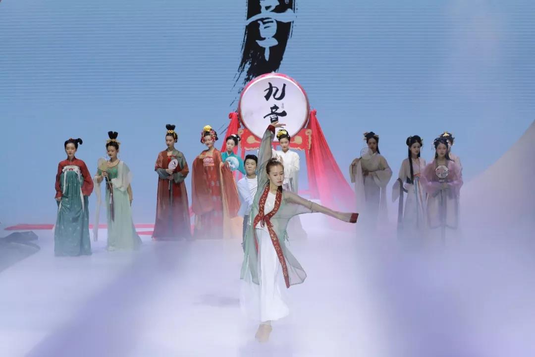 舞臺中央一面立鼓,古典舞者飄逸舞動,傳承班展演大秀在濃郁的古風氣氛中啟幕。18名設計師的70余套華服按西域、意識流、中原分為三段,穿梭于樂舞合奏中。新一代設計師抽出不同的中國傳統美學剖面,進行混合、對立或拆解,再加以重新構筑,并在其中標注強烈的個人風格和思索。打破古今時間界線,用剪刀作詩,與古人對話,將“陳舊”一詞融入新時代服裝語境,顛覆為復古雅致。