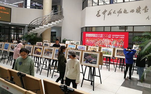 11月4日,由中國日報社、中國畫報出版社主辦,我校圖書館承辦的《百名攝影師聚焦新中國70年》畫冊精選圖片高校巡展活動在我校圖書館大廳展出。