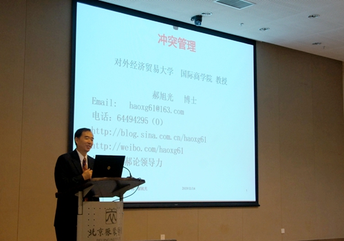 受聘儀式結束后,郝旭光教授做《沖突管理》示范課展示,以身邊顯而易見的平常事為例闡釋沖突的定義、類型、原因及處理的策略。老師們通過這一堂教學環節緊密設計、課堂氛圍輕松活躍的示范課,領略了教學名師的授課風采。接著在《“五位一體,五度合一”—提高本科課堂教學質量感悟》的報告中,郝教授詮釋了指導思想、內容、保障的多維五位一體和高水平課堂教學的五度合一,分享了自己的教學和科研經歷;分析了青年教師及課堂教學的困惑;闡釋了師生關系是互相成全、一起成長、共同提高。郝教授語言詼諧幽默、思維睿智機敏,使參會的老師們受到了啟迪和鼓舞。