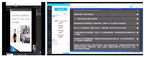“思想道德修養與法律基礎”教研室全體教師在本次線上教學中采用的主要授課平臺包括騰訊課堂和中成智慧課堂。騰訊課堂簡便直觀、穩定性高,但課堂考勤和互動情況無法得到記錄和保留;中成智慧課堂可以實現課堂的實時、全員互動,并且學生到課情況和互動記錄會清晰準確地得以保留,但無法獨自作為直播授課的工具。教研室全體教師同時使用兩個平臺,在進行直播授課時,充分利用“騰訊課堂”的“舉手”功能與“中成手機智慧課堂”的“互動答題”功能,實現直播授課過程中的全體學生的實時全員互動和點對點問答。在“騰訊課堂”中,通過“屏幕分享”功能使學生實時觀看到在“中成手機智慧課堂”中的答題情況,對學生的答案進行及時的、有針對性的分析講解,是了解學生對課程內容的掌握情況、思想變化情況并給出具體反饋的有力工具,使教學更具針對性和互動性。同時在線課堂氣氛更為活躍,增加了學生線上課程的專注度。兩個平臺聯動互補,既克服了線上教學缺乏互動的局限性,同時也為學生的期末評價留下準確客觀的參考資料。