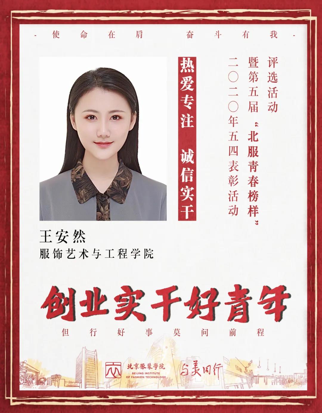 她就是來(lái)自服飾藝術(shù)與工程學(xué)院的創(chuàng)業(yè)實(shí)干好青年:王安然。