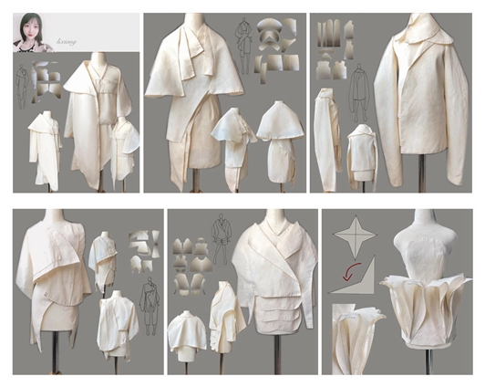 從今天起,將分三期對2017級服裝與服飾設計專業的女裝設計方向4個班和服飾傳承與創新設計方向1個班的同學們的創意結構網絡課程作業進行網上展示。為了使作品達到最好,同學們從案例選擇、白坯造型實驗,再到作品拍攝、排版等,經歷了不斷的修改與完善的過程。在此與大家分享,共同進步。