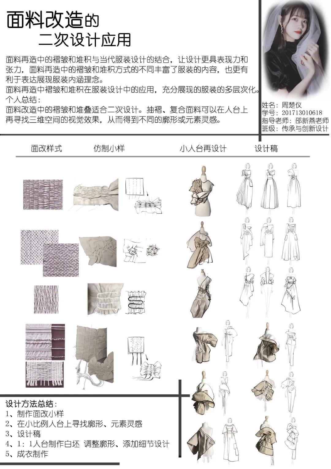 今天,對2017級服裝與服飾設計專業服飾傳承與創新設計班同學們的創意結構網絡課程作業進行網上展示。為了使作品達到最好,同學們從案例選擇、白坯造型實驗,再到作品拍攝、排版等,經歷了不斷的修改與完善的過程。在此與大家分享,共同進步。