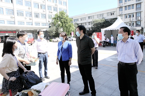 秋日明媚,萬物可愛。9月8日,北京服裝學(xué)院校園內(nèi)橫幅高掛,秩序井然,喜迎 2020年研究生新生。校黨委書記周志軍,院長賈榮林,黨委副書記倪賽力,黨委常委、副院長廖青、仲叢生、詹炳宏到校南門迎新點和“一站式”服務(wù)點檢查迎新報到工作,看望前來報到的研究生新生,慰問參加迎新工作的師生員工,共同迎接2020級研究生新同學(xué)入校。