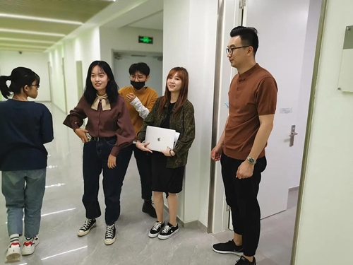 鄧柯老師在專業(yè)教室指導學生創(chuàng)作