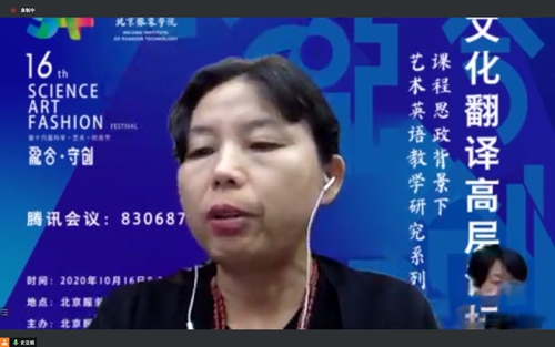 我校語言文化學院張慧琴教授和史亞娟副教授分別發言,張慧琴在簡要介紹了學院中外服飾文化交流中心的歷史與現狀之后,圍繞“服飾文化翻譯協調之美”主題,闡釋了服飾文化的特殊性、服飾文化翻譯的特點、中外學界文化翻譯相關理論的研究現狀,在梳理服飾文化翻譯協調理論脈絡的基礎上,繪制了文化翻譯協調理論實施的全過程圖,并結合案例論證了服飾文化翻譯就是探索服飾文化和諧美的歷程,強調只有在尊重服飾文化差異中協調文化差異,才有可能最大限度傳承優秀文化,成就服飾文化翻譯協調和諧之大美。