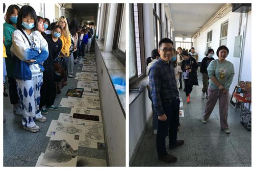 北校區分管教學的領導在與任課師生們溝通藝術設計基礎課程課業展評事宜