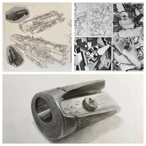 課業要求是(1)學生在教師指導下制定學習方案(主題、內容、方法、意義、寫作);(2)主題思想圍繞“發現設計之美”(閱讀、觀察、寫生、表現、思考、寫作);(3)主題思想始終貫穿課程教學與實踐的每個階段(閱讀、觀察、寫生、表現、思考、寫作);(4)藝術表現手法(手繪、剪、刻、鏤、貼、綜合影像、實物構成、電子文案及作業);(5)作業形式(紙本、素描、電子作業冊)。課業內容是主題+寫生+(透視、多角度+外結構、內結構+重構);質感+肌理+形態;創意+表現。