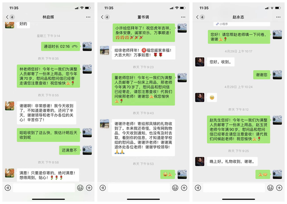 收到慰問品(慰問信)和慰問金后,老師們都格外感動,第一時間通過電話、微信等方式紛紛表示:在慶祝建黨101周年之際,在黨的二十大召開前夕,收到黨組織的關愛,感到十分溫暖與幸福,感謝黨組織!表示永遠聽黨話、跟黨走,以最好的精神面貌迎接黨的二十大勝利召開。