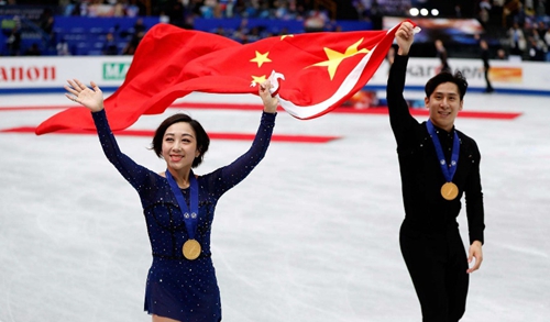 隋文靜韓聰組合獲得2019年世界花樣滑冰錦標賽雙人滑冠軍,比賽服裝由北服科研團隊設計