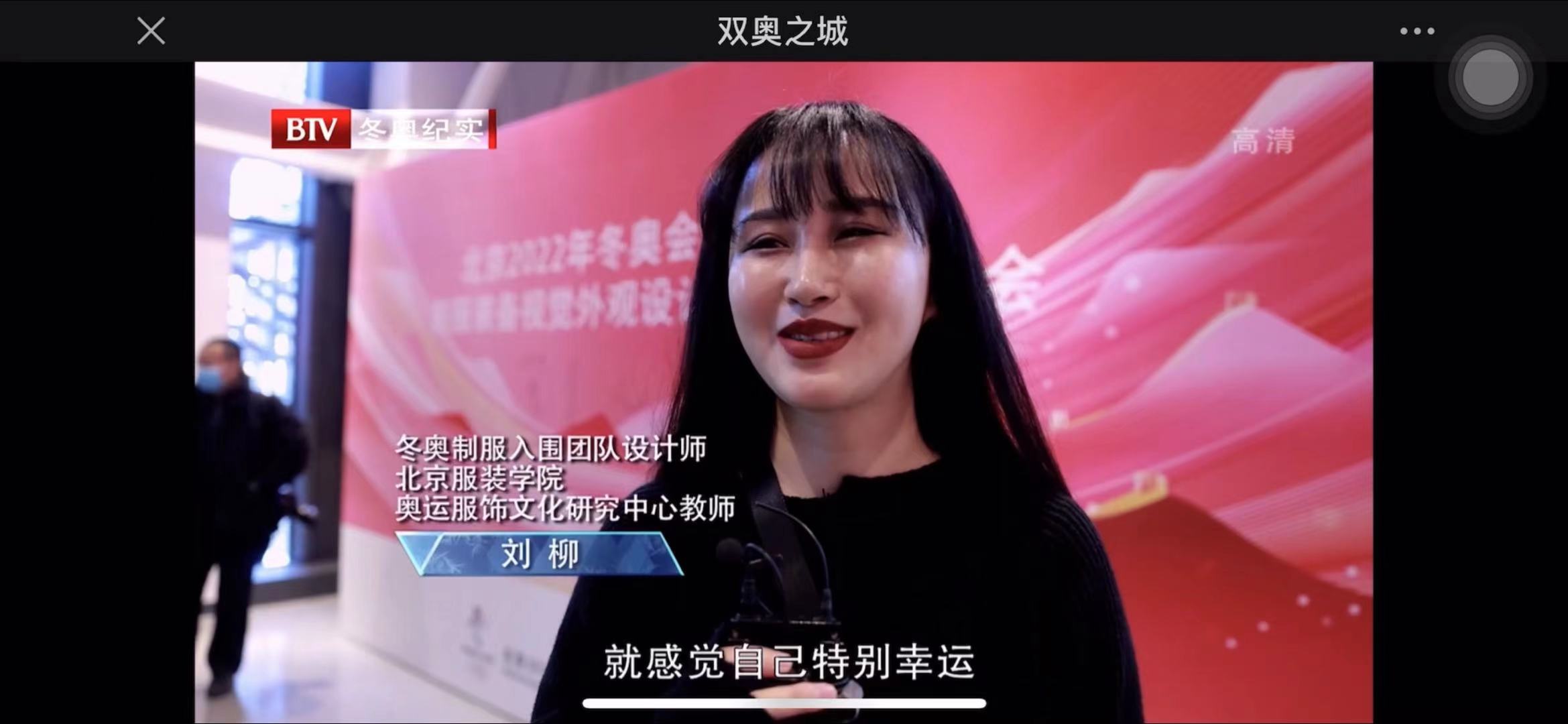 2月19日,北京電視臺奧運頻道播出了《流動的風景-冬奧制服專題紀錄片》,對北京服裝學院賀陽教授等多名教師及北服安踏奧運聯合實驗室參與的系列工作進行了全方位報道。