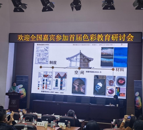 第二場研究生色彩課程建設主旨演講環節由成朝暉教授主持,江南大學設計學院張毅教授、清華大學建筑歷史與理論專業李路珂副教授、內蒙古工業大學建筑學院李楠副教授、北京郵電大學數字媒體與設計藝術學院盛卿副教授分別作了題為《刺繡色彩教學》、《重新看見古代遺跡的色彩》、《以教促研,以研促教:碩士色彩課程教學成果與思考》、《碩士學位課程“色彩研究”的教學實踐與思考》大會報告,向來會嘉賓介紹了研究生教學理念、學科交叉等內容。