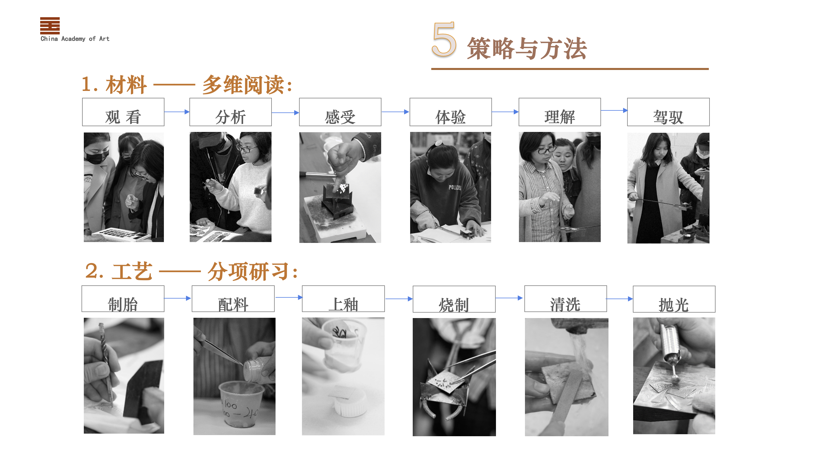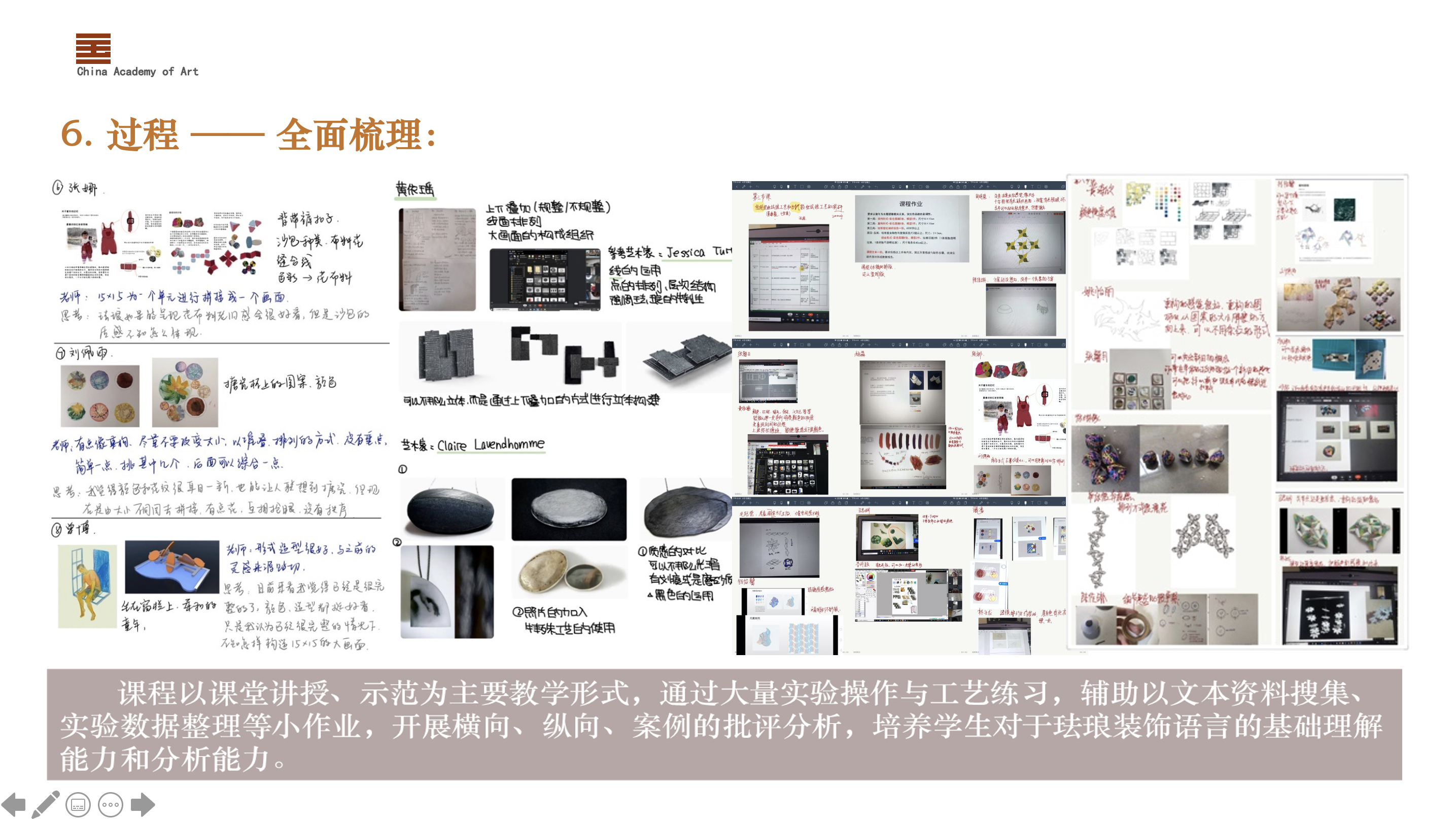 中國美術學院手工藝術學院首飾方向負責人段燕儷為我們展示了中國美術學院手工藝術學院的裝飾基礎課程,以琺瑯工藝為例展示了科學的工藝研究思路,以及帶領學生完成的課程實踐,從材料工藝的角度,積極拓寬手工藝術的表達方法。