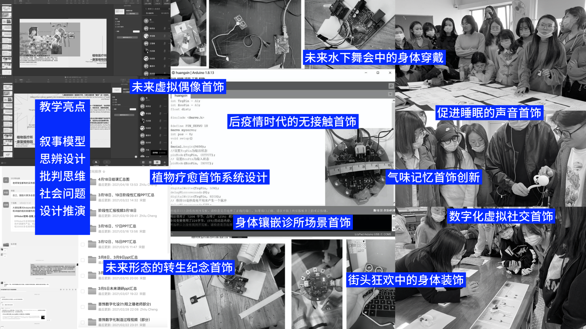 北京服裝學院服飾藝術與工程學院珠寶首飾教學部副教授宋懿、助理教授程之璐通過模型、工具和方法,帶領學生從未來思維的角度,探索首飾與身體的新型關系。并且借助多樣化的數字技術完成面向未來的概念敘事。