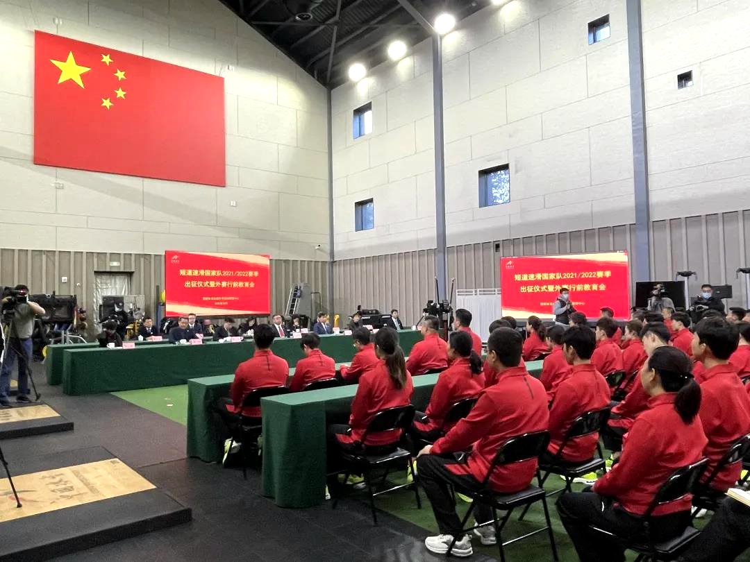 10月16日,短道速滑國家隊2021/2022賽季出征儀式暨外賽行前教育會在北京首鋼園冬訓中心舉行,儀式上公開了短道速滑國家隊出征世界杯人員名單。北京服裝學院黨委常委、副院長王小藝受邀出席活動。
