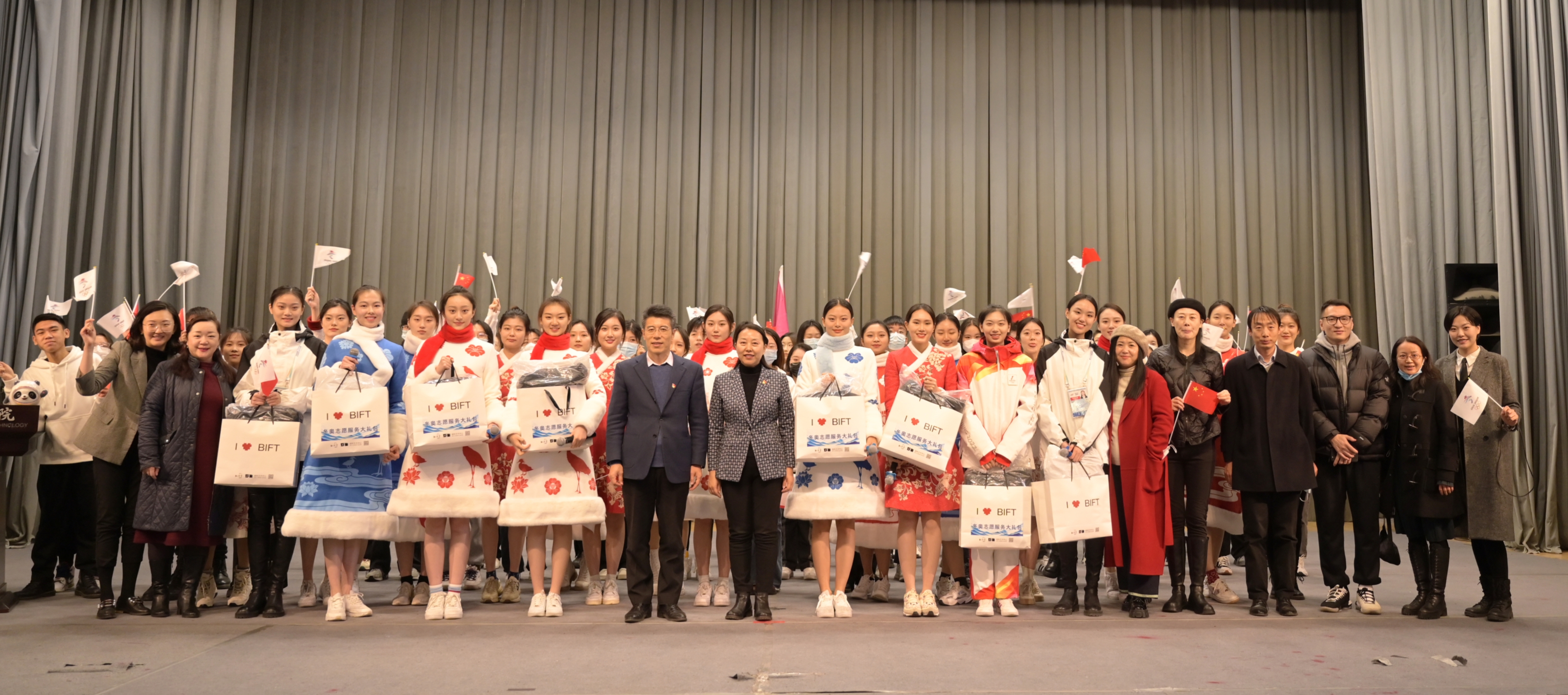 賈榮林為我校服務保障冬奧會、冬殘奧會的三個領域志愿者授予了志愿服務旗。