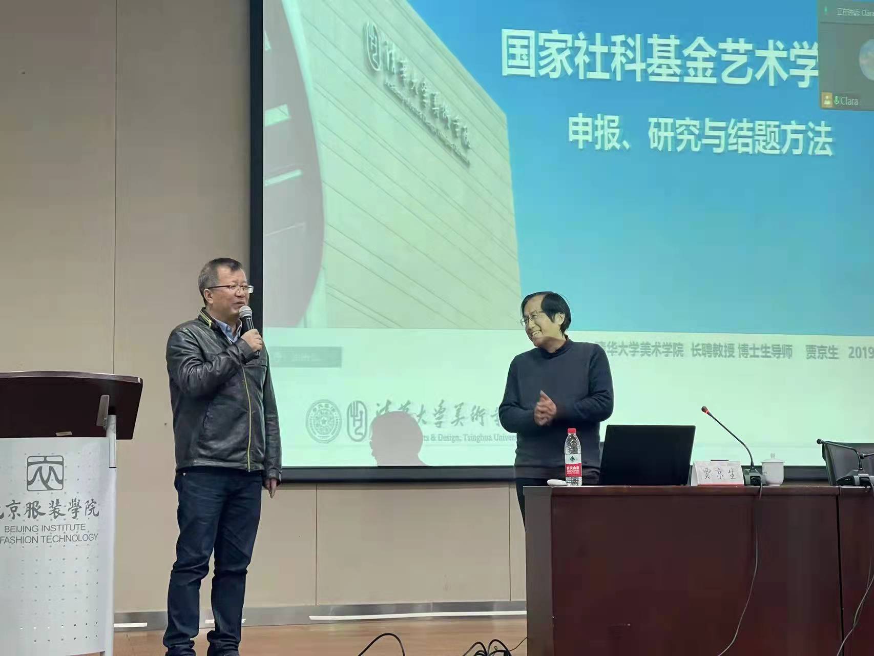 12月24日下午2:00,北京服裝學(xué)院“藝術(shù)科技大家講”系列講座第二講在7號樓二層報告廳開幕,線上同步直播。科學(xué)技術(shù)處處長王永進主持會議。此次培訓(xùn)會是科學(xué)技術(shù)處為提高我校國家社科基金藝術(shù)學(xué)項目的申報質(zhì)量和立項率而特意組織的。科學(xué)技術(shù)處特邀清華大學(xué)美術(shù)學(xué)院長聘教授、博士生導(dǎo)師賈京生教授和蘇州大學(xué)卓越人才特聘教授、國家社科基金(藝術(shù)學(xué))重大招標項目“設(shè)計美學(xué)研究”首席專家李超德教授為我校教師帶來《國家社科基金藝術(shù)學(xué)項目申報、研究與結(jié)題方法》和《選題、申報、研究,我做學(xué)術(shù)研究的體會》兩場講座。學(xué)校學(xué)術(shù)委員會委員、校級和院級科研機構(gòu)負責(zé)人、45歲以下中青年教師等30余人在現(xiàn)場參加會議,同步直播在線人數(shù)100人。