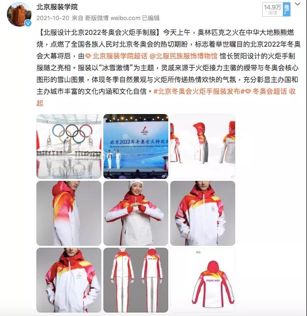 北服設計北京2022年冬奧會和冬殘奧會火炬手服裝