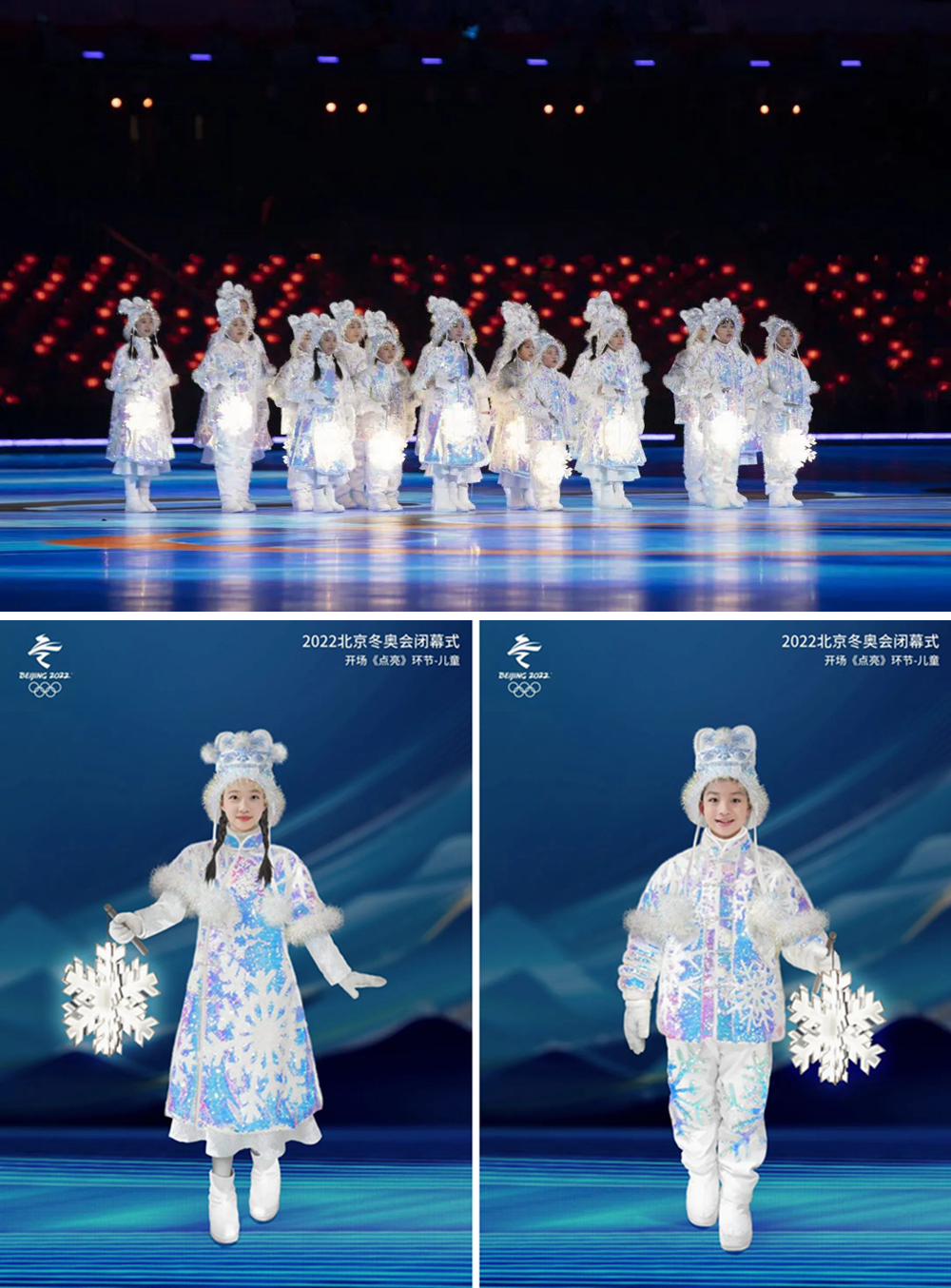 冬奧閉會幕式上每個環(huán)節(jié)的服飾設(shè)計都以雪花為主題,在簡潔、現(xiàn)代的設(shè)計基調(diào)之上,凸顯和升華了每個環(huán)節(jié)的主題與審美意境,為整個閉幕式的視覺呈現(xiàn)和文化輸出做出了令人擊節(jié)的藝術(shù)貢獻(xiàn)。