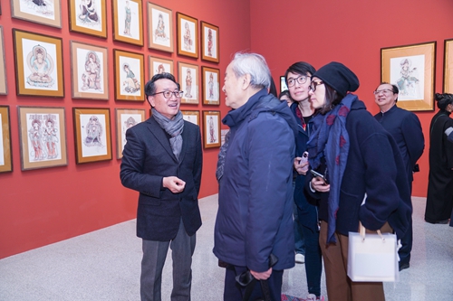 劉元風教授介紹展覽整體情況。他談到,該展覽歷經(jīng)一年多時間的精心籌劃與設計,以弘揚中華民族優(yōu)秀傳統(tǒng)服飾文化為主旨,涵蓋對敦煌藝術的臨摹、整理和設計創(chuàng)新,較為全面地展現(xiàn)了不同時期敦煌服飾形態(tài)及服飾相關非遺技藝。