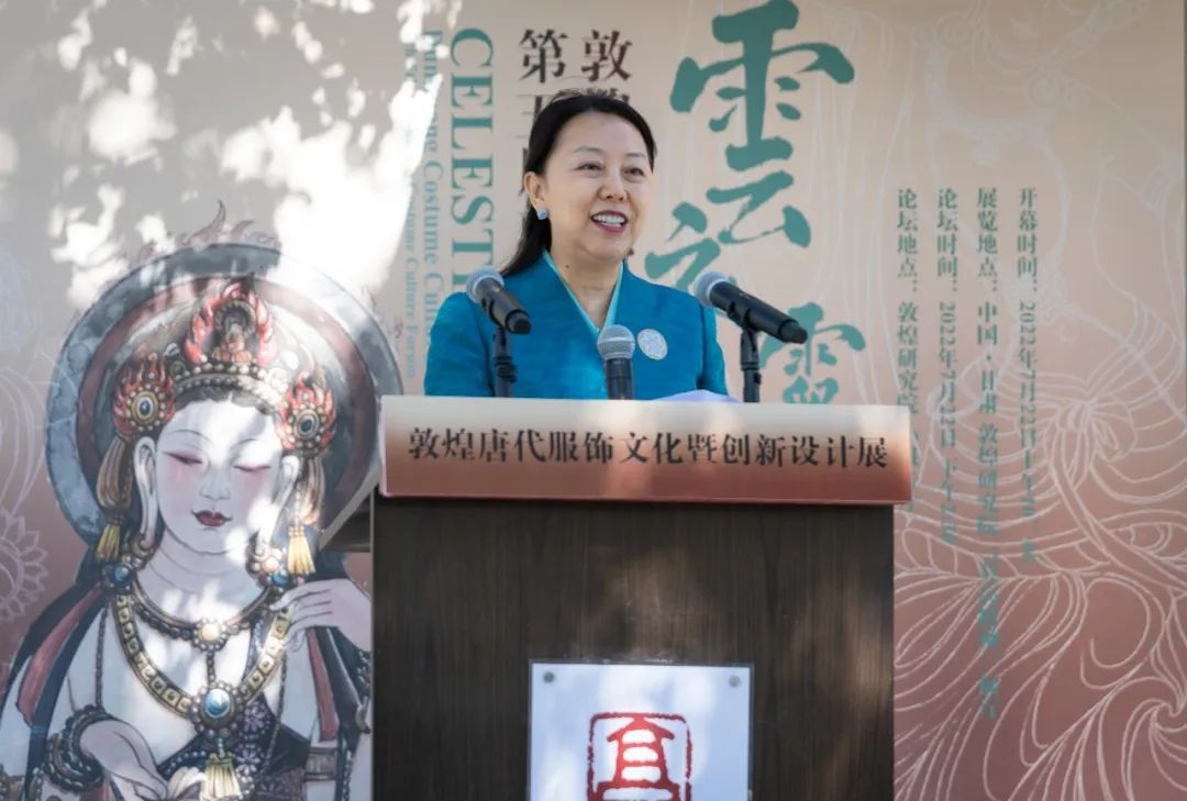 7月22日上午,北京服裝學院第十八屆“科學·藝術·時尚”節系列活動“云衣霓裳:敦煌唐代服飾文化暨創新設計展”開幕式在甘肅敦煌研究院展廳隆重開幕,當天“第五屆敦煌服飾文化論壇”在甘肅敦煌研究院小報告廳成功舉辦。此次活動由敦煌研究院、北京服裝學院主辦,敦煌石窟文物保護研究陳列中心、敦煌研究院科研管理處、敦煌研究院美術研究所、敦煌服飾文化研究暨創新設計中心(以下簡稱“中心”)承辦,中國紡織出版社有限公司和華服志網站學術支持。
