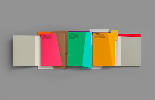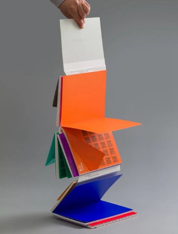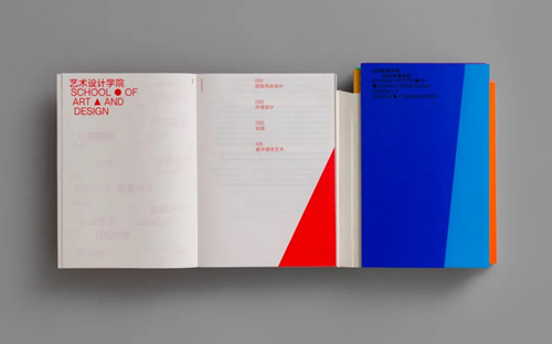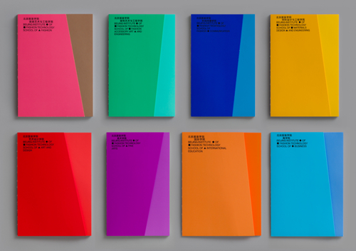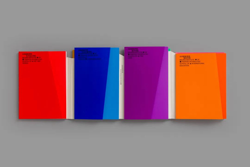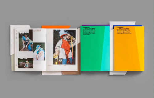 作品集分冊依據學院劃分,8個二級學院8套專屬色彩。開本也在合理利用紙張的前提下,做了橫向或縱向的尺寸微調,8種尺寸各具特色,疊加五彩繽紛的折頁效果,更顯錯落有致。