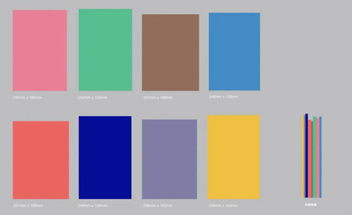 在符合工業16開本尺寸的前提下,計算出8種不同尺寸,以3mm的度量變換長寬比。書籍尺寸不同,但面積基本等同。