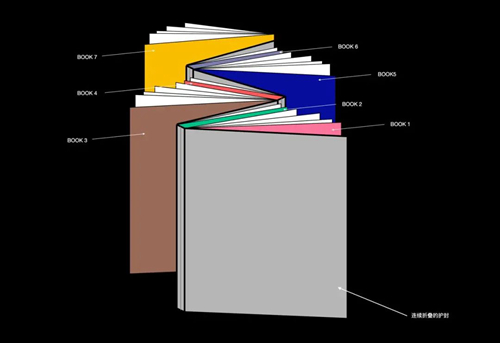 合集裝幀設計并非常規意義的封面、書脊、封底,而是延續“新裁”理念,用可變的折疊結構體現非線性、開放自由的閱讀方式。讀者可以從任意一本開始閱讀,而后通過折疊變化出新的書籍形態,無形中參與到整個設計行為過程,成為“新裁”系列的創作者。