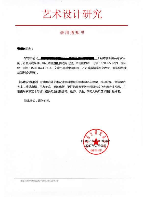 近日有不法分子通過網絡以及其它平臺冒充北京服裝學院學報《藝術設計研究》實施非法行為,以刊登投稿作者文章為由收取審稿、版面費等騙取錢財,敬請廣大作者提高警惕性,防止上當受騙!鄭重提示:北京服裝學院《藝術設計研究》被CSSCI(2017-2018)來源期刊目錄收錄,且從審稿至出刊的整個過程中不向作者收取任何費用!如遇任何與本期刊相關的收取費用行為,均為詐騙!北京服裝學院《藝術設計研究》唯一投稿郵箱為:shixuebao@126.com,編輯部聯系電話:010-64288020。特此聲明。附件:假冒錄用證明(受騙投稿者提供)北京服裝學院