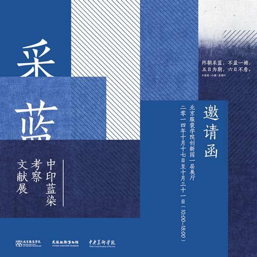 中央美術(shù)學(xué)院奧運(yùn)藝術(shù)研究中心“采藍(lán)——中印藍(lán)染考察文獻(xiàn)展”是2014年5月至8月間,北京服裝學(xué)院與中央美術(shù)學(xué)院團(tuán)隊(duì)分別在印度海德巴拉、艾哈邁德巴德與中國(guó)貴州、南通等地區(qū)進(jìn)行藍(lán)染工藝的田野調(diào)研的成果匯報(bào)。