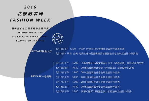 2016北服時裝周|2016.3.14-3.18北京服裝學(xué)院服裝藝術(shù)與工程學(xué)院2016屆畢業(yè)設(shè)計展暨北服時裝周,是北京服裝學(xué)院2016開年首個大型時尚活動。延續(xù)以往慣例,北服時裝周優(yōu)秀作品將于三月下旬在中國國際時裝周推出專場發(fā)布會,因此,北服服裝藝術(shù)與工程學(xué)院畢業(yè)設(shè)計校內(nèi)展演歷來早于其他同類院校和專業(yè)。每年的北服時裝周都標志著一波中國時尚新生力量的率先登場,年復(fù)一年的北服設(shè)計風(fēng)暴,一直引領(lǐng)著學(xué)院派先鋒時尚的創(chuàng)新方向。2016北服時裝周將于3月14日至3月18日在BIFTPARK 1號秀場和銀色大廳盛大推出。本屆北服時裝周匯集了服裝藝術(shù)與工程學(xué)院三大專業(yè)2012級畢業(yè)生的設(shè)計作品(含國際留學(xué)生)。活動包含7場動態(tài)時裝秀和1個靜態(tài)作品展,從服裝與服飾設(shè)計專業(yè)各方向的服裝設(shè)計作品,到服裝表演專業(yè)的模特秀,再到時尚文化與傳播專業(yè)的創(chuàng)意雜志書,全方位呈現(xiàn)服裝藝術(shù)與工程學(xué)院各專業(yè)方向畢業(yè)生的本科學(xué)習(xí)成果。今年的北服時裝周由服裝藝術(shù)與工程學(xué)院籌劃組織,男裝設(shè)計專業(yè)方向負責(zé)人楊潔老師設(shè)計統(tǒng)籌,各專業(yè)方向畢業(yè)展示都有全新突破,首次按“時尚創(chuàng)意”和“時尚成衣”進行專場發(fā)布的女裝設(shè)計方向是本屆一大亮點。同時,各專業(yè)贊助企業(yè)和贊助力度大大超越以往,已有90多家時裝企業(yè)和30多家媒體表示將派代表親臨北服時裝周。2016北服時裝周7場動態(tài)秀的演出工作都是由服裝表演專業(yè)2013級學(xué)生編排制作,2014、2015級的模特同學(xué)進行展示表演。時尚文化與傳播專業(yè)2013、2014級學(xué)生團隊不僅要完成采編報道、宣傳推廣、公關(guān)接待工作,還要與藝術(shù)設(shè)計學(xué)院攝影系師生合作,完成《2016北服時裝周每日快訊》五期的快速設(shè)計與制作。所以說,2016北服時裝周本身就是一個以學(xué)生為主體的創(chuàng)作團隊,是服裝與服飾設(shè)計、服裝表演、時尚文化與傳播各專業(yè)通力協(xié)作完成的時尚大趴。