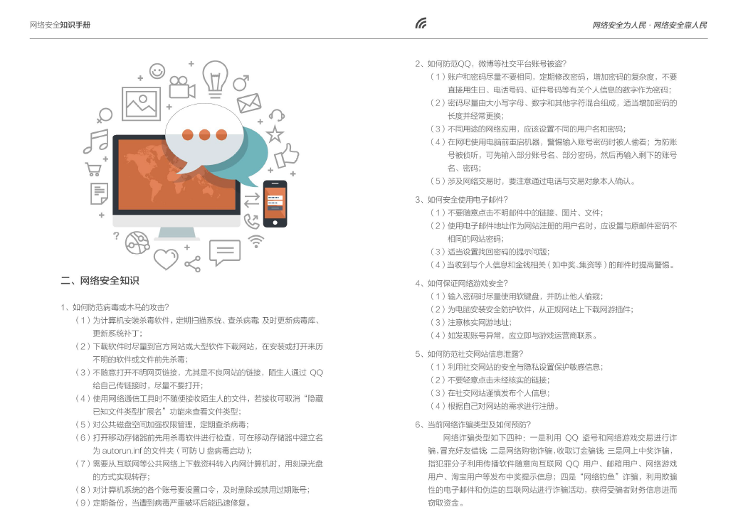 - 為進(jìn)一步提升我校師生員工的網(wǎng)絡(luò)安全意識和安全防護(hù)技能,深入學(xué)習(xí)貫徹《2016年國家網(wǎng)絡(luò)安全宣傳周北京市工作方案》,營造平安健康、和諧穩(wěn)定的校園學(xué)習(xí)生活氛圍,我校將于9月19日至25日開展為期一周的網(wǎng)絡(luò)安全專題宣傳活動。本次活動由計算機(jī)信息中心和黨委宣傳部聯(lián)合主辦,黨院辦、學(xué)生處、團(tuán)委、研究生院、圖書館、保衛(wèi)處等相關(guān)單位協(xié)辦。活動以“網(wǎng)絡(luò)安全為人民 網(wǎng)絡(luò)安全靠人民”為主題,旨在樹立全校師生正確的網(wǎng)絡(luò)安全觀,培育有高度的安全意識、有文明的網(wǎng)絡(luò)素養(yǎng)、有守法的行為習(xí)慣、有必備的防護(hù)技能的“四有好網(wǎng)民”。活動將以新媒體作為宣傳主陣地,并向全校師生發(fā)放《網(wǎng)絡(luò)安全知識手冊》,結(jié)合網(wǎng)絡(luò)安全知識問答、專題教育、課堂講授及專題研討等活動,在全校范圍開展網(wǎng)絡(luò)安全宣傳周教育活動,增強(qiáng)廣大師生的網(wǎng)絡(luò)安全意識,提升基本防護(hù)技能,營造安全健康文明的網(wǎng)絡(luò)環(huán)境,共筑網(wǎng)絡(luò)安全防線。