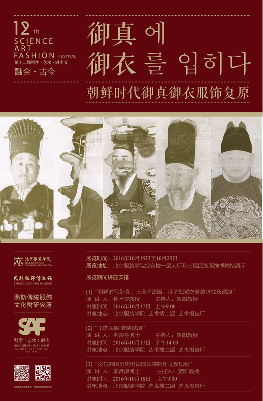 - 由北京服裝學院民族服飾博物館、韓國蘭斯傳統(tǒng)服飾文化研究所 、韓國檀國大學石宙善博物館聯(lián)合策劃舉辦的“朝鮮時代御真御衣服飾復原展”將于2016年10月15日至25日在北京服裝學院展出。展覽期間還將舉辦三場與展覽相關的學術講座。