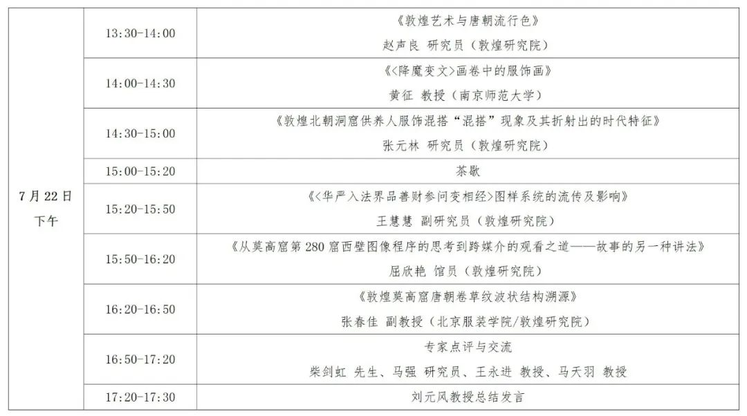 “云衣霓裳:2022 年敦煌服飾文化論壇”日程