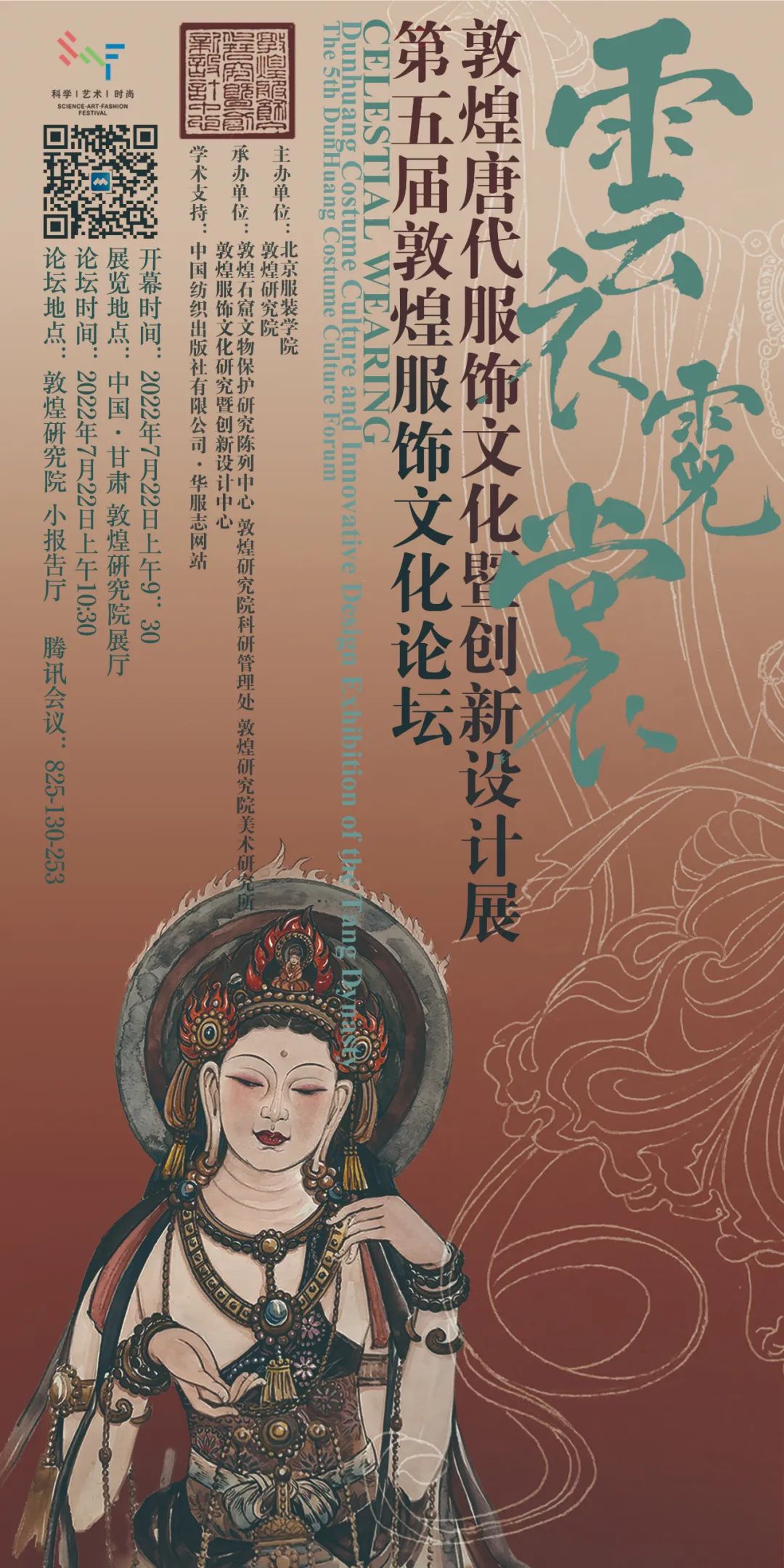 北京服裝學院第十八屆“科學·藝術·時尚”節系列活動“云衣霓裳:敦煌唐代服飾文化暨創新設計展”開幕式將于2022年7月22日上午9:30在敦煌研究院展廳隆重舉辦,屆時將同時舉辦“2022年敦煌服飾文化論壇”,誠邀各界相關學者、同仁積極參與和支持!