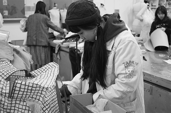 李笑囡在做女裝設(shè)計(jì)最后的細(xì)節(jié)處理