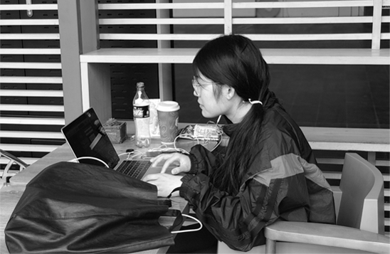 實(shí)驗(yàn)班丁天安在完善自己的作品集