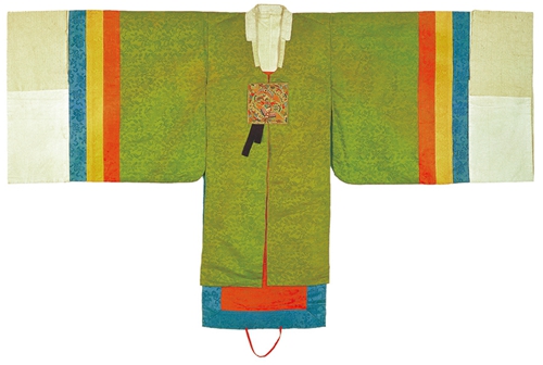 衣服除了蔽體擋寒的功能之外,還有著區分社會性地位,展現個人喜好,在共同體中表達禮儀等作用。衣服的顏色能彰顯民族傾向,象征階級和權威。這次展出的服飾是宮中的男女禮服、官服等禮儀場合著裝。