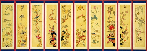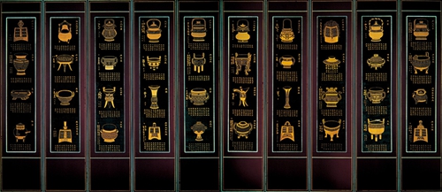 刺繡鐘鼎圖屏風19世紀