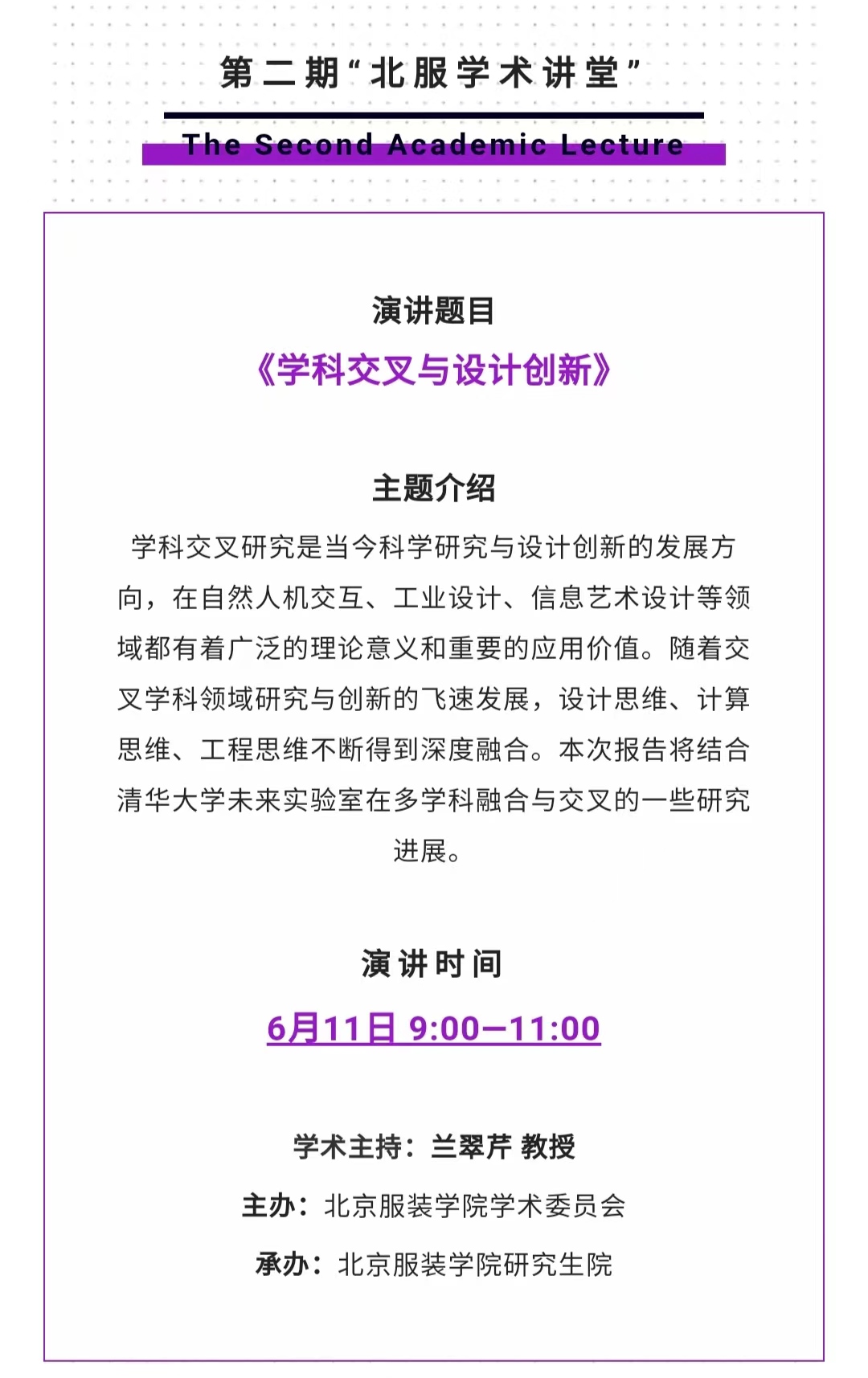 - “北服學術講堂”第二講《學科交叉與設計創新》
