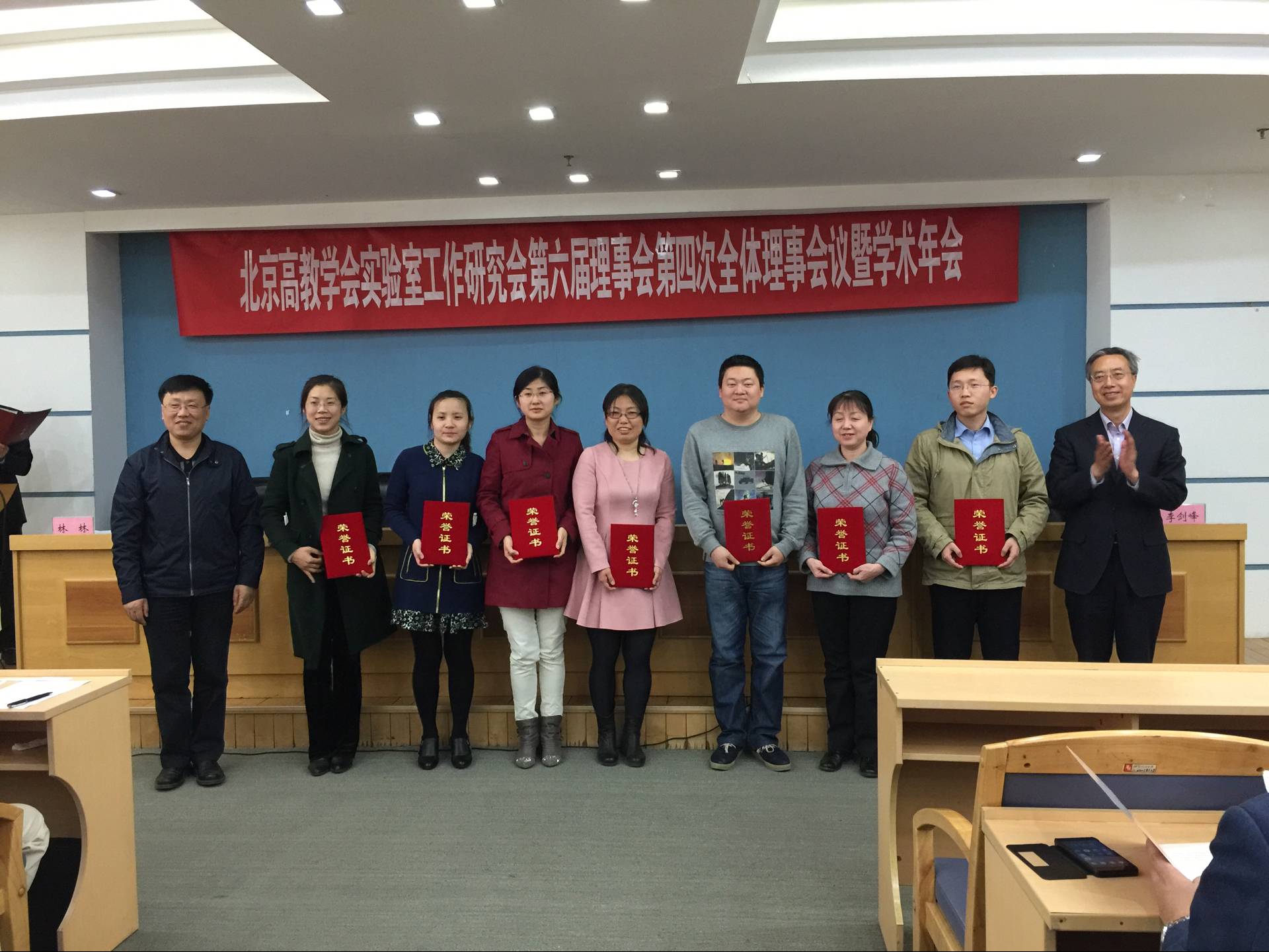 4月1日,北京高教學會實驗室工作研究會2016年第六屆全體理事會在北京化工大學召開,會上為2015年在實驗室學術征文獲獎的老師舉行了頒獎儀式,由清華大學實驗室主任兼副理事長吳曉峰為獲獎的老師頒發榮譽證書并合影留念。