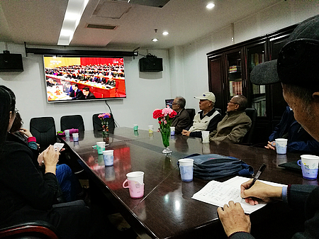 10月18日上午,中國共產黨第十九次全國代表大會勝利召開。按照市委教育工委和學校黨委的要求,離退休工作處組織我校離退休老同志代表16人在離退處會議室集體觀看十九大開幕盛況,全程聆聽了習近平總書記的工作報告。